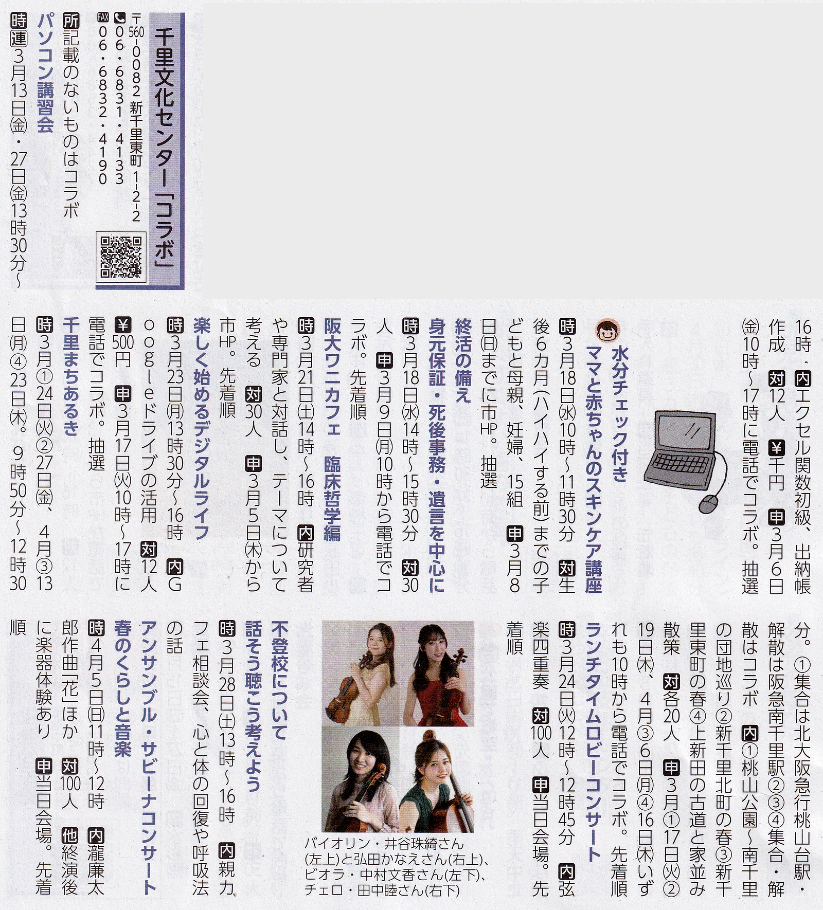 千里公民館で、無料のパソコン・スマホなんでも相談会が開催されています。